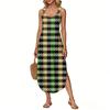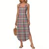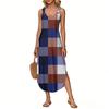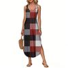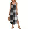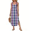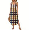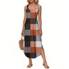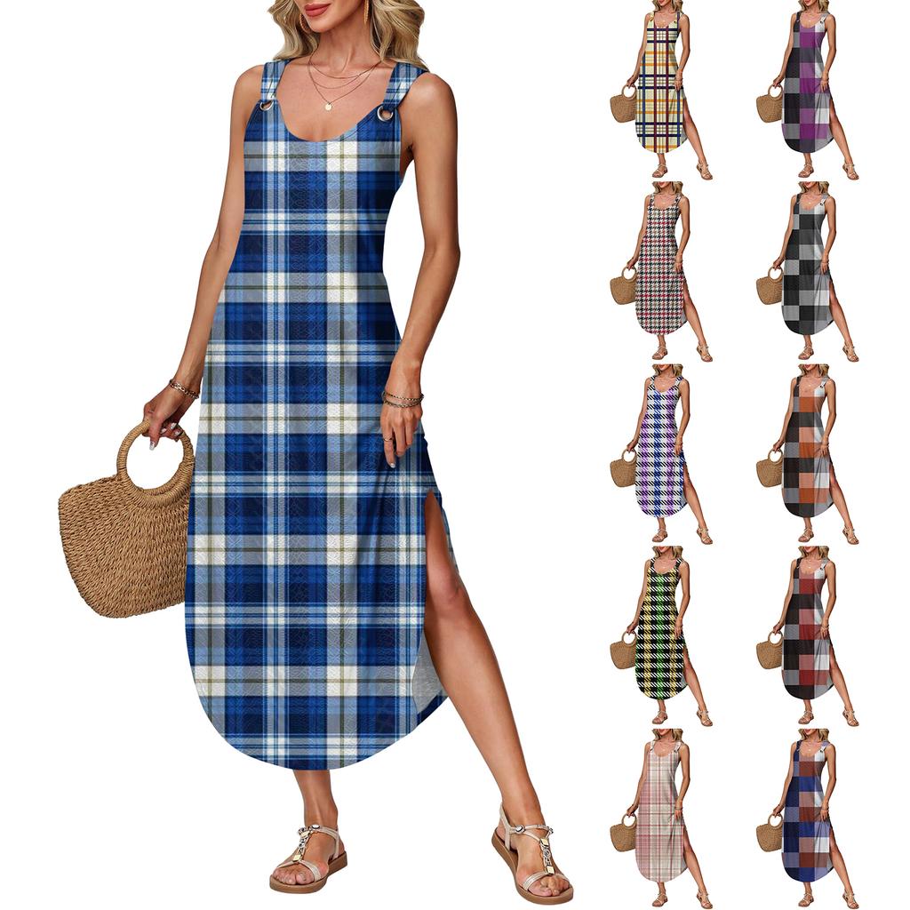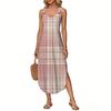 Women's Summer Long Dress, Sleeveless with Side Slits, Long Plaid Printed Vest Dress