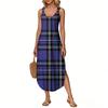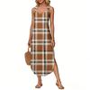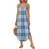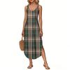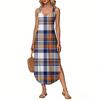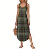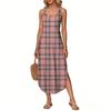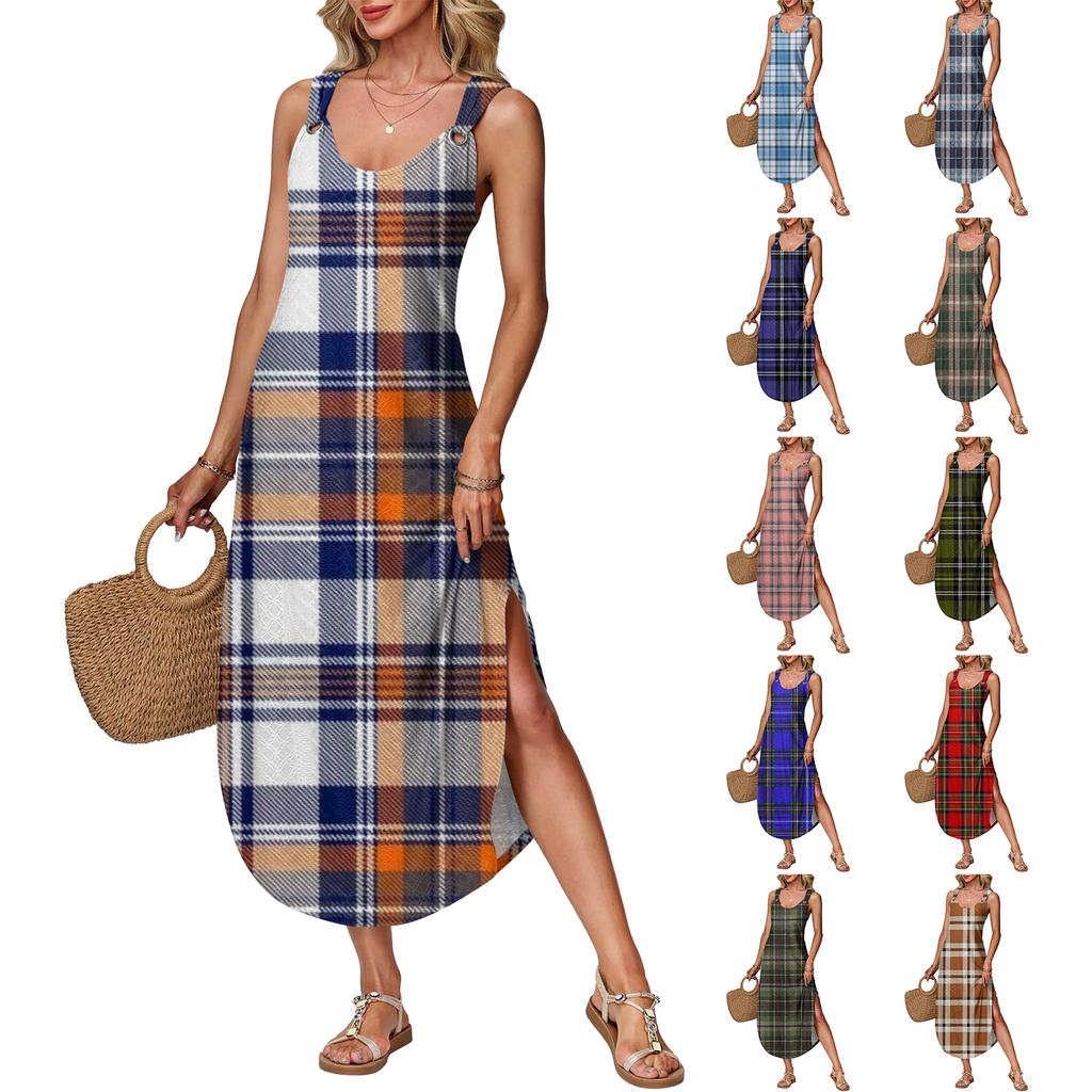 Women's Summer Long Dress, Sleeveless with Side Slits, Long Plaid Printed Vest Dress