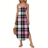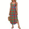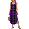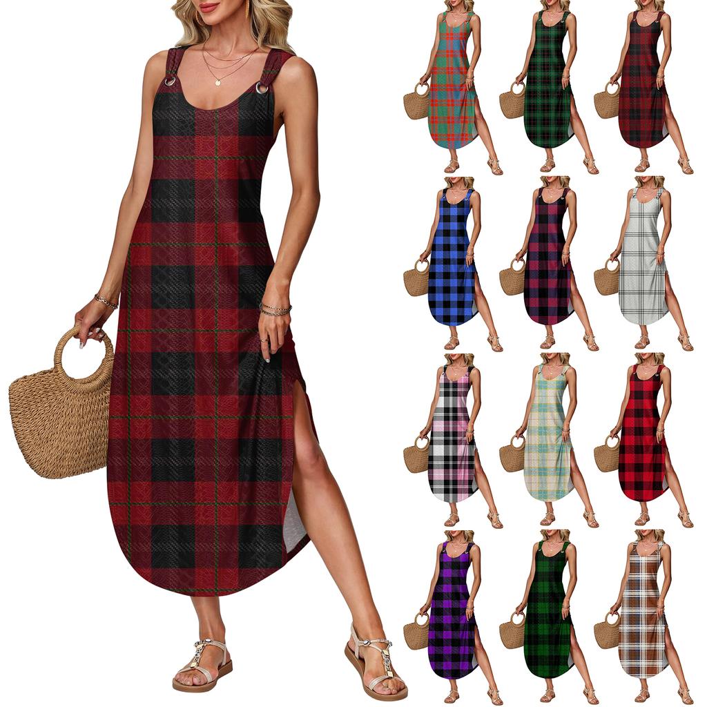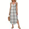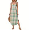 Women's Summer Long Dress, Sleeveless with Side Slits, Long Plaid Printed Vest Dress
