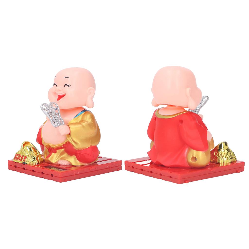 Buddha Figurine Eco Friendly Auspicious Smiling Eyes Monk Decoration Auto Shaking Hand Solar Power Energy Saving for Indoor