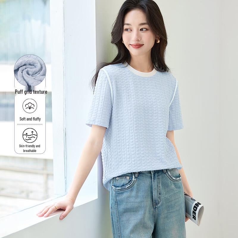 Handu Yishe Women's Puff Grid Texture T-shirt