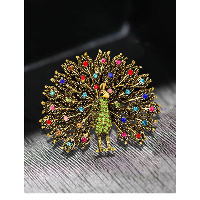 Color Crystal Peacock Shape Exquisite Retro Accessory Brooch