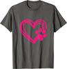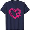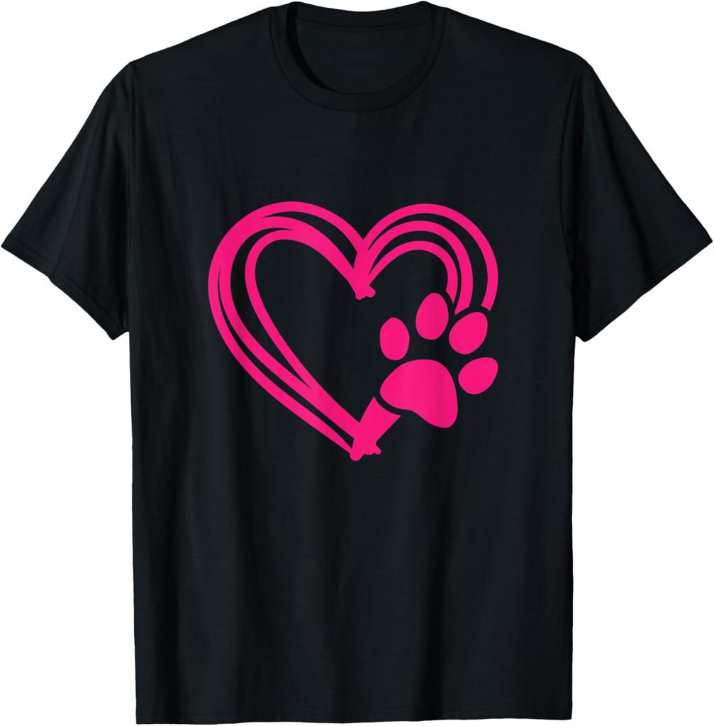 Pink Paw Print Heart Graphic Tee Casual Cotton Short Sleeve TShirt for Dog Lovers