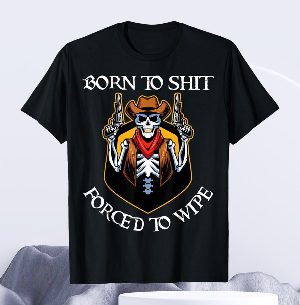 Born To Shit Forced To Wipe Letters and Skull Gunman Pattern Tshirt Summer Fashionable Casual Cotton Short Sleeved Tshirt