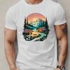 Mountain Camping River Sunset Graphic Tee Men Casual Breathable Short Sleeve TShirt