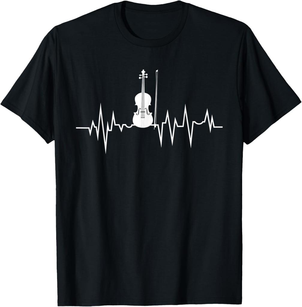Violin Heartbeat EKG Rhythm Graphic Print Casual Cotton Short Sleeve TShirt for Music Lovers
