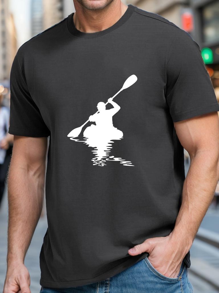 Kayaker Silhouette Graphic Tee Men Casual Short Sleeve Cotton Print TShirt Outdoor Enthusiast