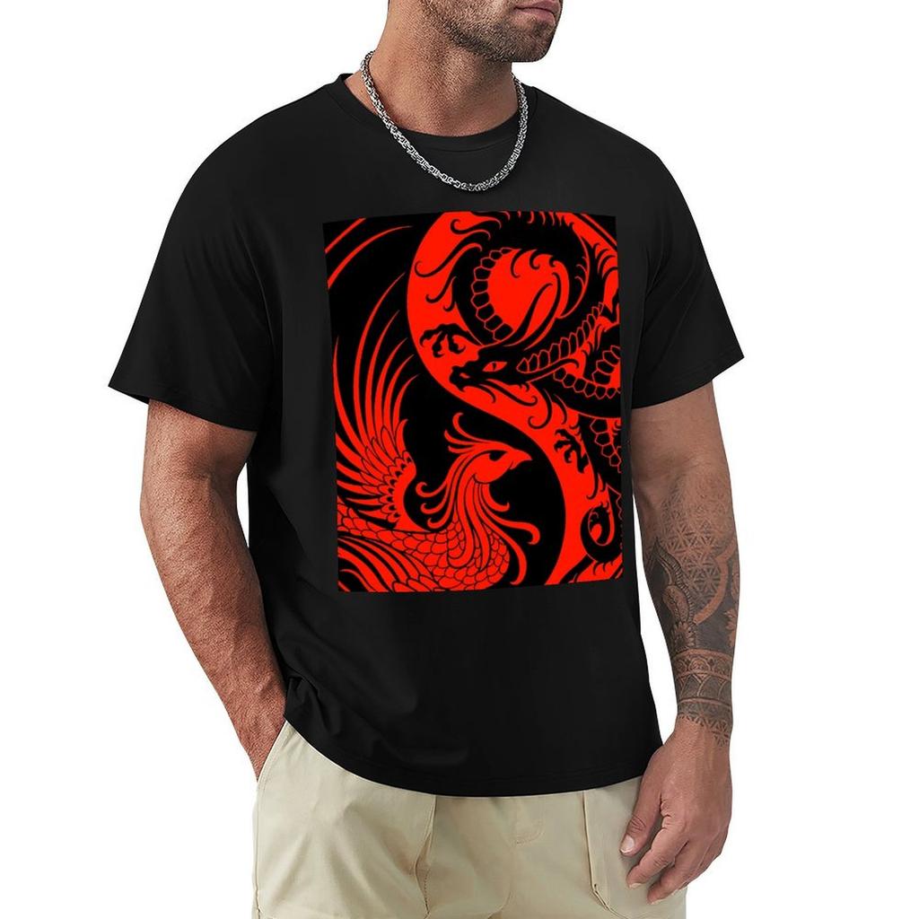 Red and Black Dragon Phoenix Yin Yang TShirt Custom Tshirts Clothing Blouse Mens Graphic Tshirts Pack