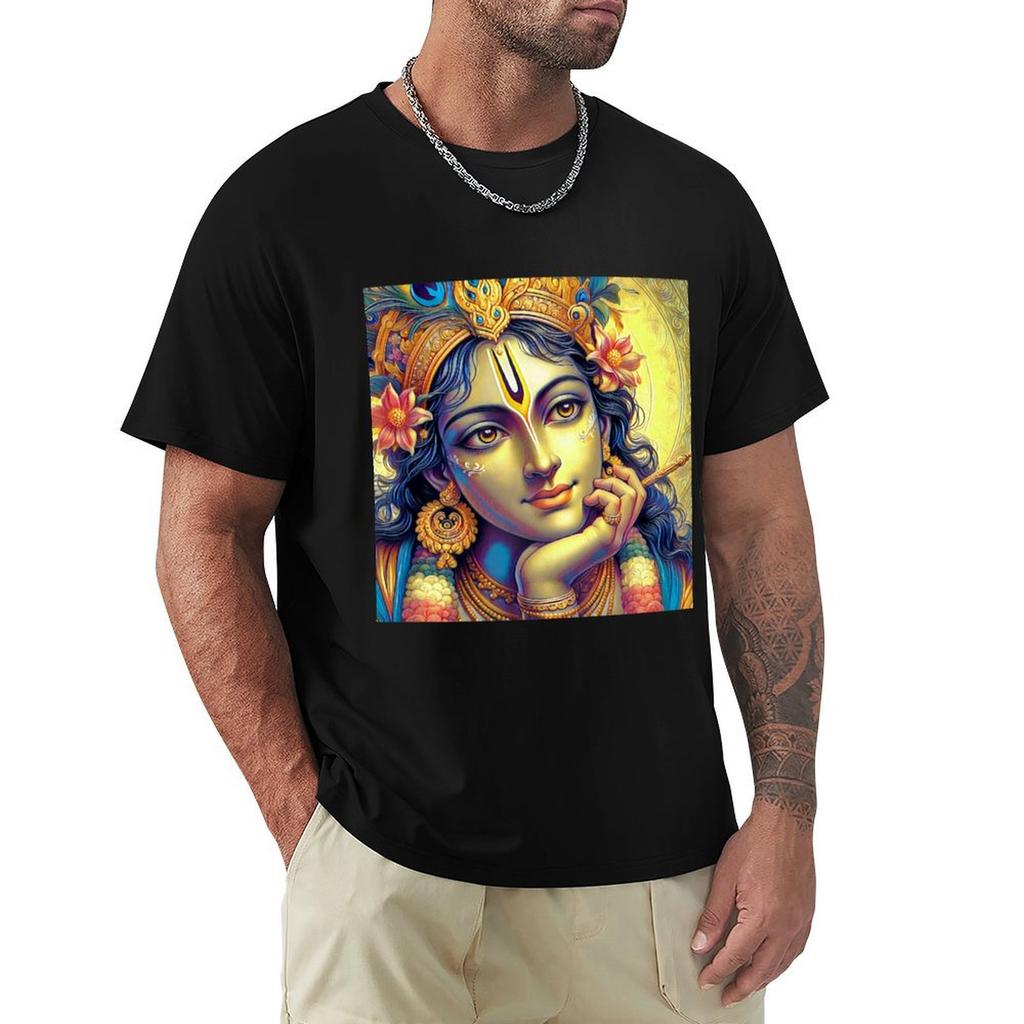 Lord Krishna Divine Face TShirt Graphic T Shirt Vintage Funny Meme Tshirts Compression Shirt Men