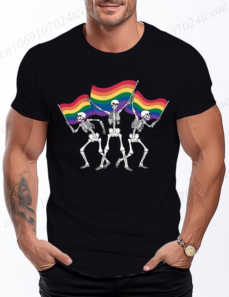 Men Women TShirt Skeleton LGBT Rainbow Pride Month T Shirts Fashion Tee Shirt Streetwear Casual Summer Unisex Tee Clothing Tops