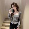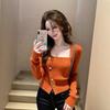 Square Collar Short Knitted Cardigan Coat for Women In Autumn and Winter, Unique Waist-cinching Top with Great Looks