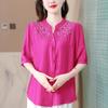 Women's Linen Blouse Embroidery Collar Half-Sleeve Casual Shirt
