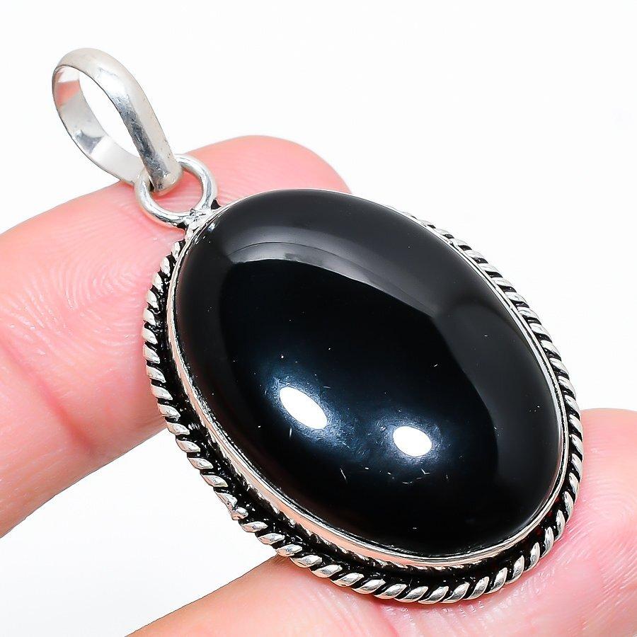 Title:- Black Onyx Gemstone 925 Silver Jewelry Pendant 1.97"