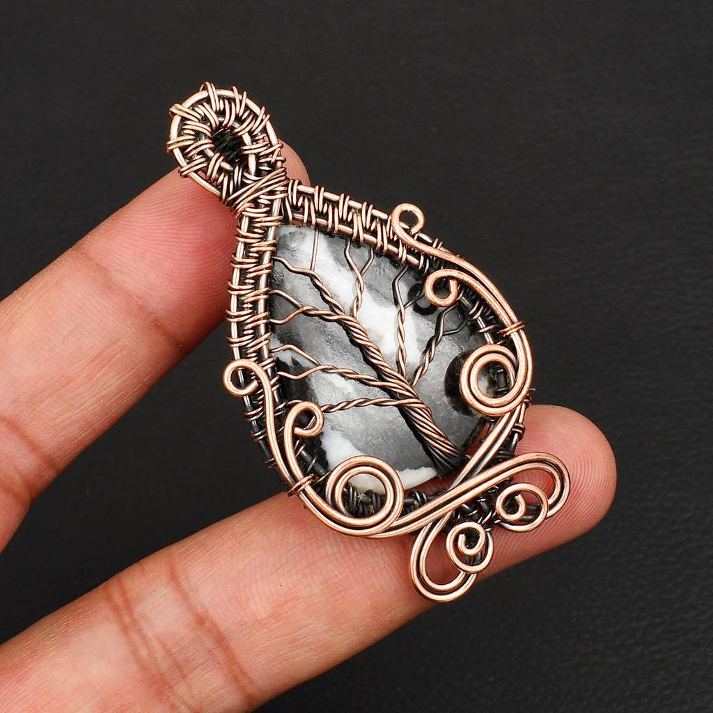 Handmade Tree of Life Copper Wire Wrapped Pendant Buffalo Turquoise Gemstone Pendant Vintage Style Jewelry for Women & Men