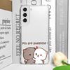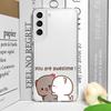 Funny Cartoon Peach Mochi Cat Phone Case for Samsung Galaxy S24 S23 S22 S21 S25 Ultra Plus FE 5G Clear Soft Covers Couple Fundas