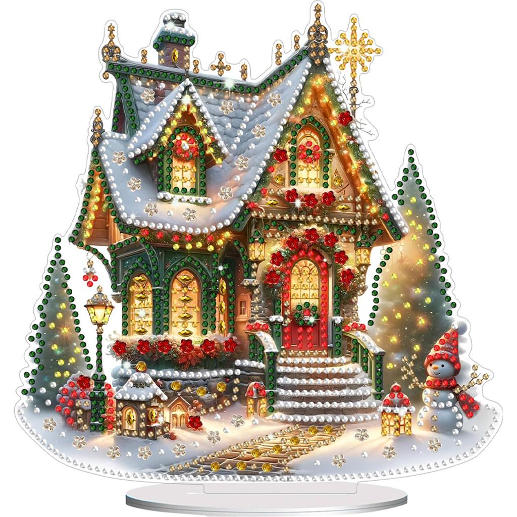 Acrylic Christmas House Colorful Light House Rhinestones Desktop Ornaments Diamond Painting Desktop Decors for Home Office Decor