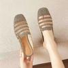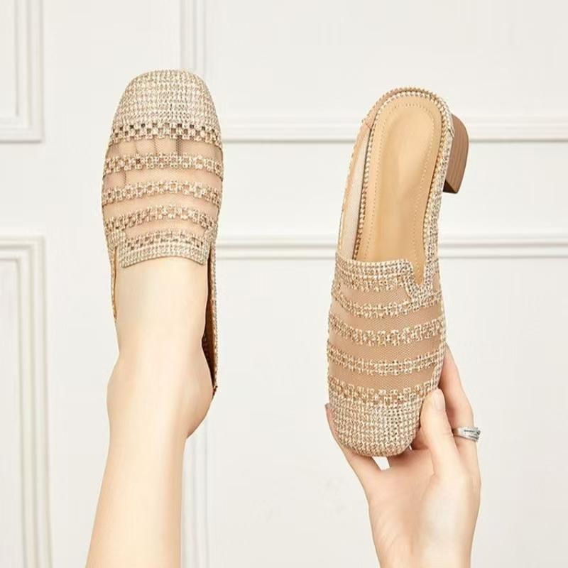 Women's Summer New Block Heel Mesh Half Slippers Soft Sole Breathable Baotou Hollow Out Outdoor Modern Slippers Kitten Sandals