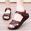 Middle Aged And Elderly Velcro Flat Sole Sandals Thick Sole Non Slip Summer New Open Toe Lightweight Breathable Leather Sandals