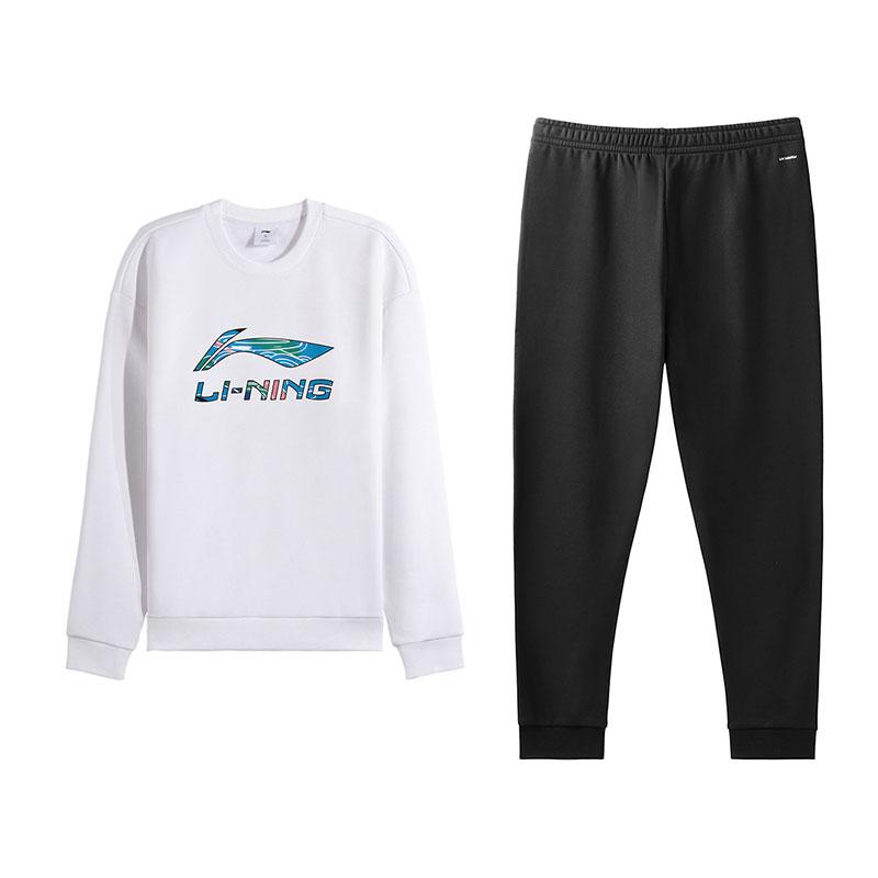 Li Ning Versatile Fashion Printed Classic Crew Neck Sweatshirt Comfortable Long Pants Casual Sports Suit Men Sweatsuit AWDVH37-6+AKLVC89-1