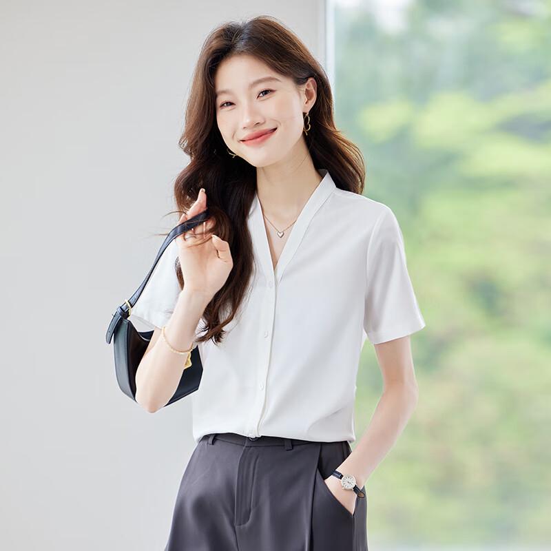 Women's V-Neck Chiffon Short-Sleeve Blouse