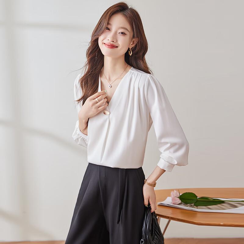 Women's V-Neck Long Sleeve Chiffon Blouse