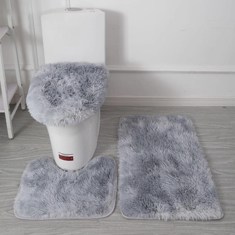 1SET Long-haired Tie-dyed Carpet Household Toilet Three-piece Non-slip Floor Mat, Water-absorbing and Dirt-resistant Bathroom Floor Mat