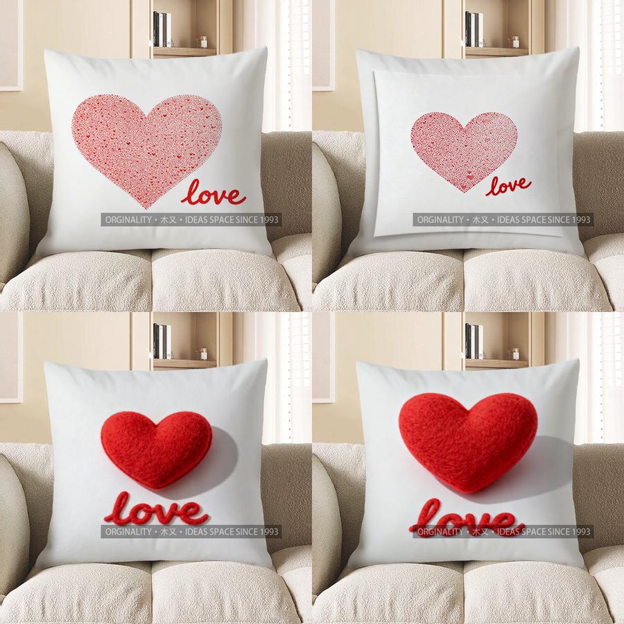 2D Heart & Love Pattern Throw Pillow Cover Pattern Cushion Cover Suitable For Sofa Bedroom Car Pillow Cover