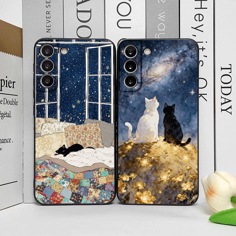 Funny Cute Cat Cartoon Pattern Phone Case for Samsung Galaxy S25 S24+ S23 Ultra S22 Plus S20 S21 FE M53 M34 M36 Soft Back Cover