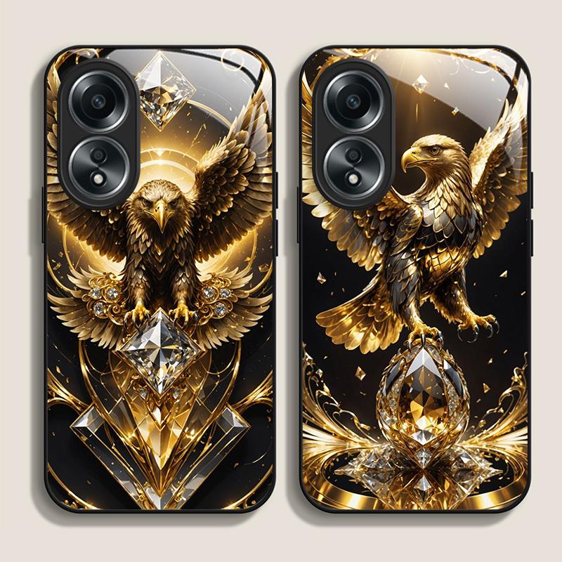 Stylish Eagle Golden Diamond Pattern Tempered Glass Phone Case for OPPO Realme 13 Pro Plus 12 11 10 9i C55 X7 GT Neo 2 3T Cover