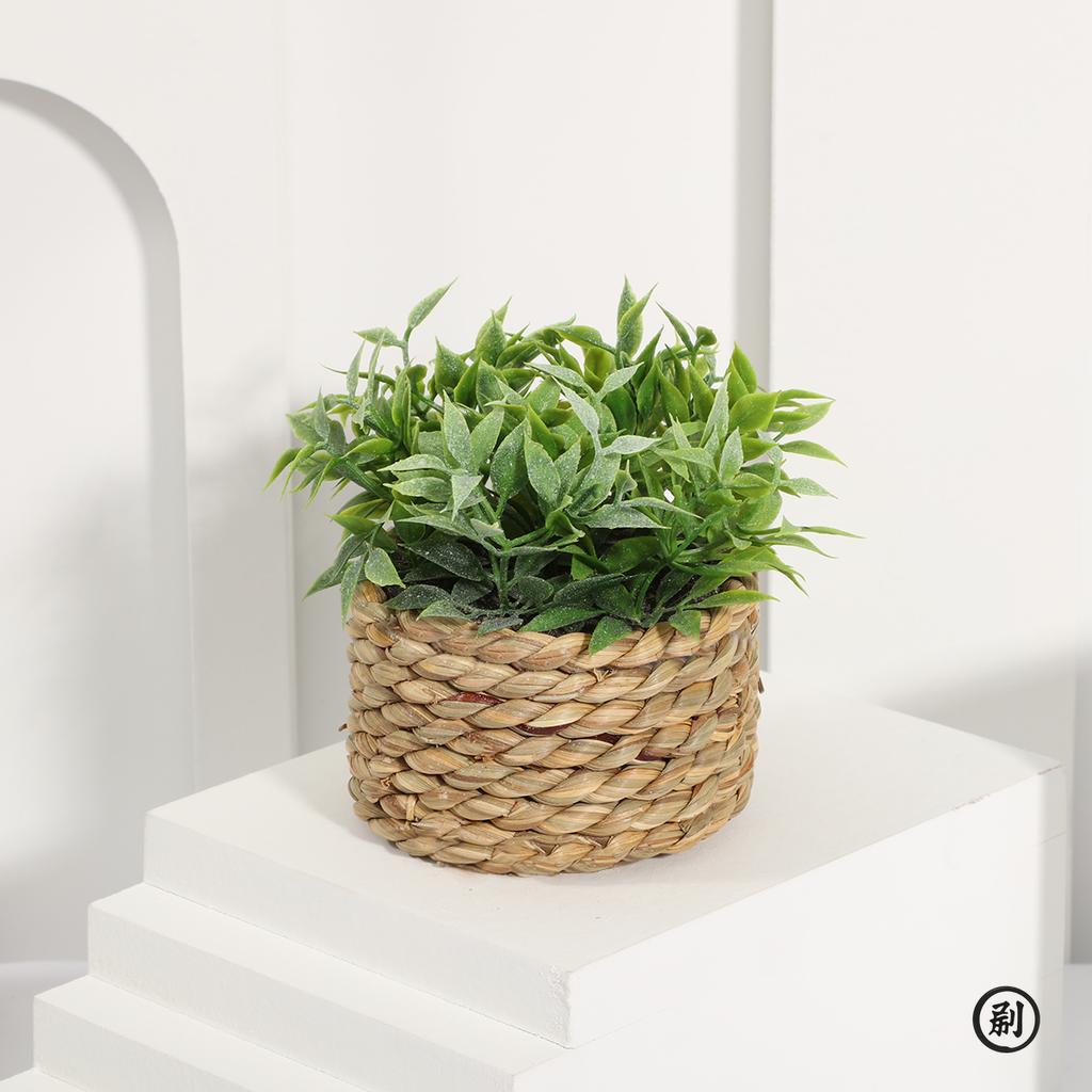 XIYA FLOWER Green Artificial Plants Eucalyptus Grass Woven Small Potted Plants Grass Mound 11cm PE Material Home Decoration