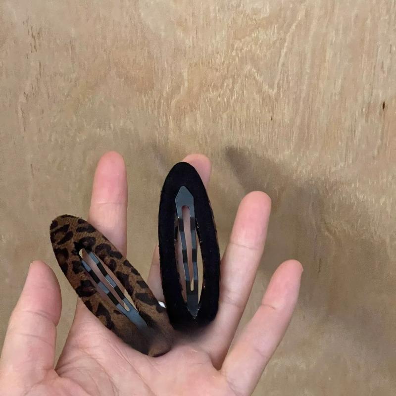 Leather Suede Leopard Print Triangular Interlock Oval Fringe Side Bar Hair Clip Hairpin Hairband