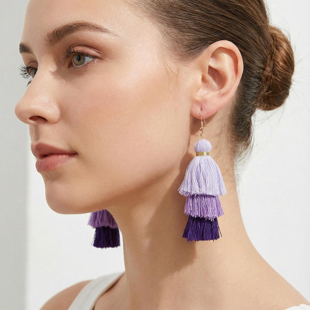 European and American Personality Exaggerated Jewelry Tower Shape Gradual Change Color Fringed Earrings Combination Set Wish Retro Earrings