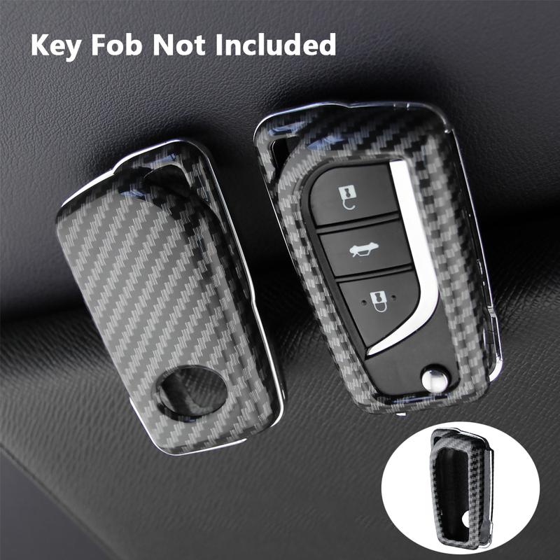 Carbon Fiber Style Car Key Fob Case Cover Shell with Keychain For Toyota RAV4 Camry C-HR Corolla Hatchback
