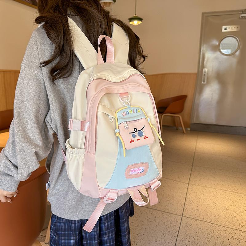 Girl, Junior High School Student Fashion Contrasting Color, College Student Backpack, Korean Version of Large-capacity Travel Backpack