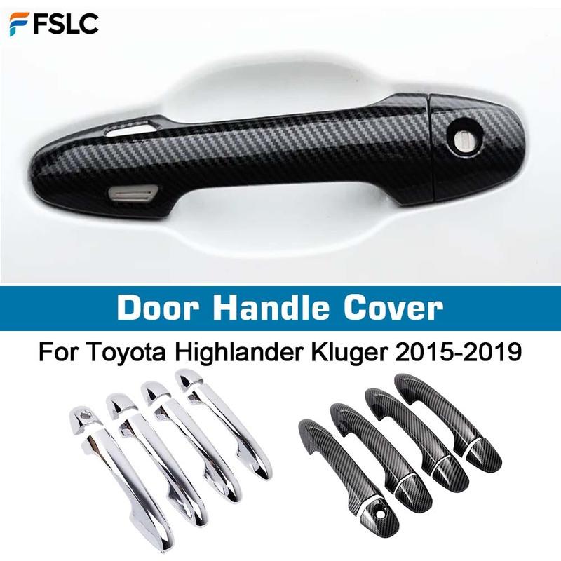Door Handle Bowl Cover For Toyota Highlander Kluger 2015- Carbon Fiber Chrome Car Decor Trim Sticker Styling Accessories