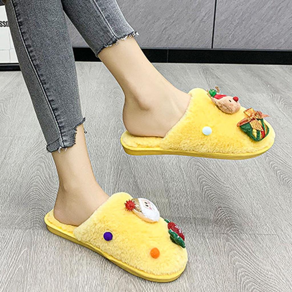 Women's Christmas Series Plush Slippers Winter Toe Covering Warm Slippers Indoor Soft Soled Cotton Womens House Slippers Size 8