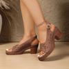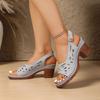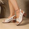 Women'S Business Sandals Summer Retro Mid Heel Openwork Carved Casual Chunky Heel Open Toe Slipper Shoes Sandalias De TacóN