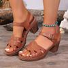 Women'S Temperament Sandals Casual Fashion Summer Korean Toe Chunky Heel Strappy High Heeled Sandal For Women Comfortable Shoes