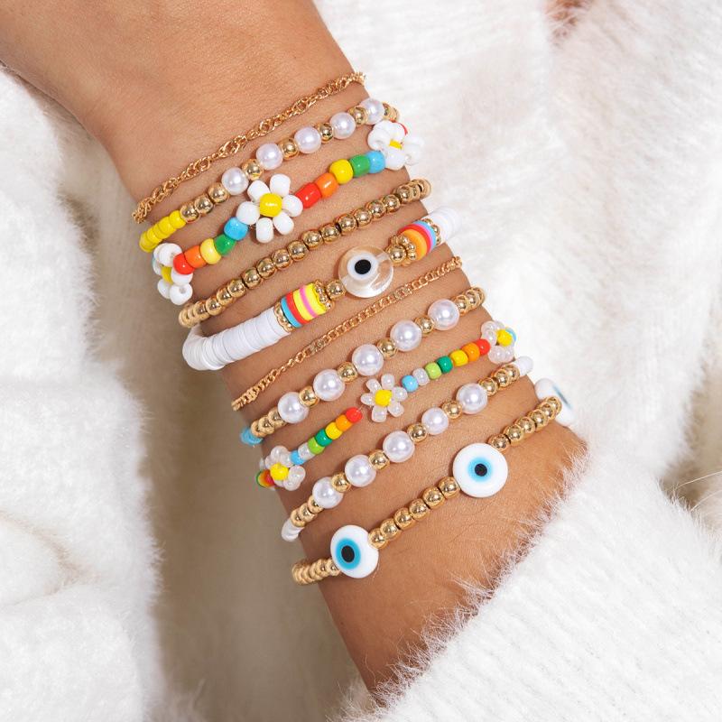 Bohemian Colored Rice Beads Eye Ten-piece Set Dopamine Exaggerated Beaded Bracelet Wholesale Women