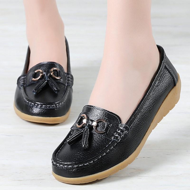 Women Flats Fashion Wedge Genuine Leather Ballerina Shoes Women Slip On Nurse Shoes Moccasins Breathable Shoes Female Plus Size