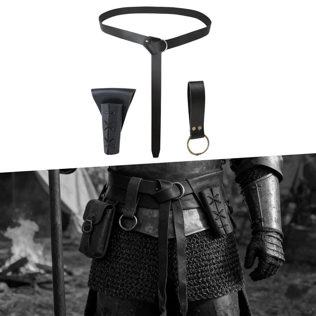 - 【Medieval Knight Cosplay】: Classic Medieval knight costume accessories, include belt, sword frog, skirt hike Suitable for knight roles play