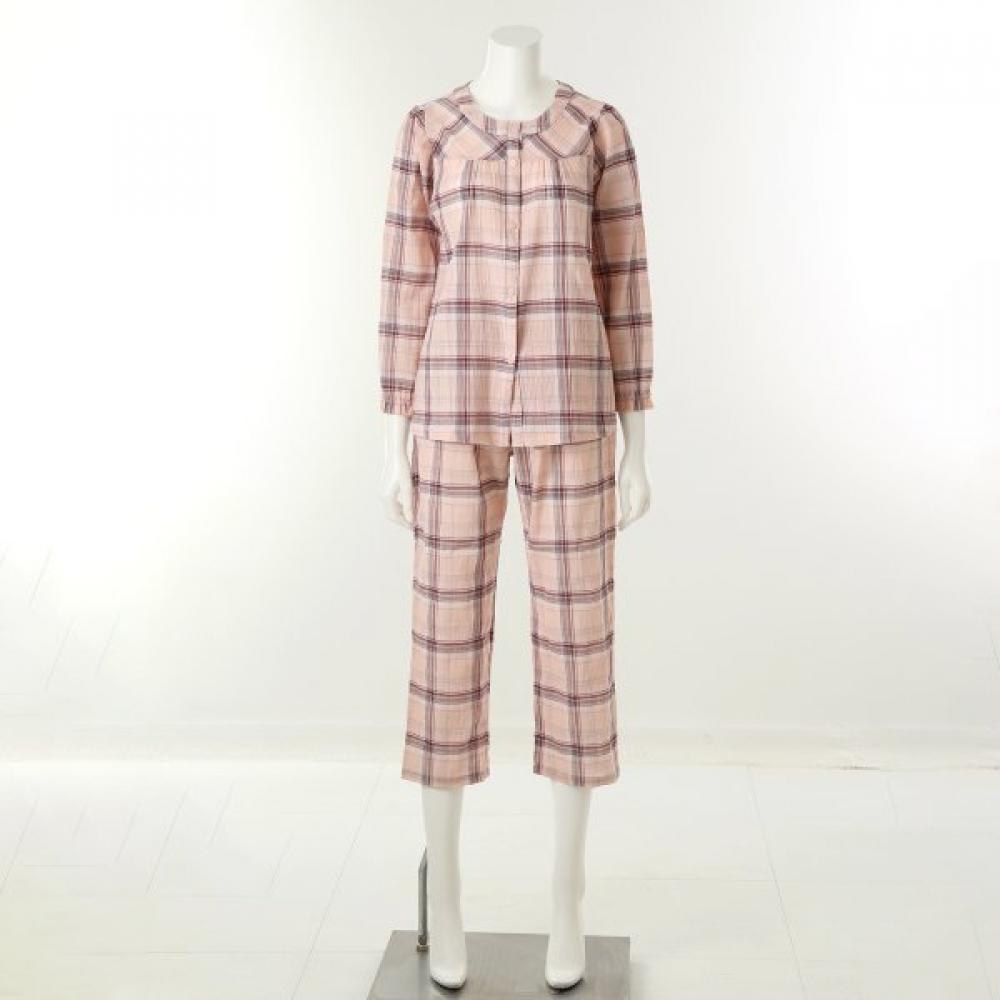 The Wakoru Yarn Dyed Cotton Check Women's Pajama WPA2512W is made from cotton yarn fabric, providing a soft and comfortable wearing experience. With excellent moisture absorption and quick-drying properties, it can be worn throughout the year, featuring a stylish check pattern and a round neckline. The cuffs are designed with elastic for a comfortable fit.