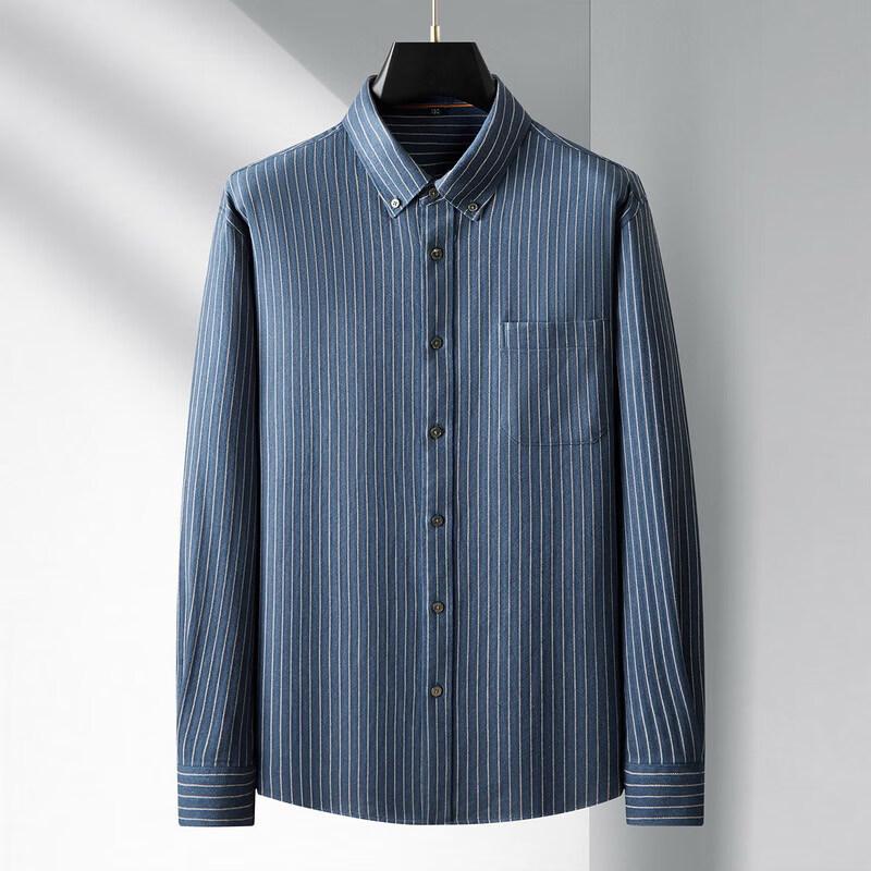 Men's Plus Size Striped Brushed Long Sleeve Casual Shirt