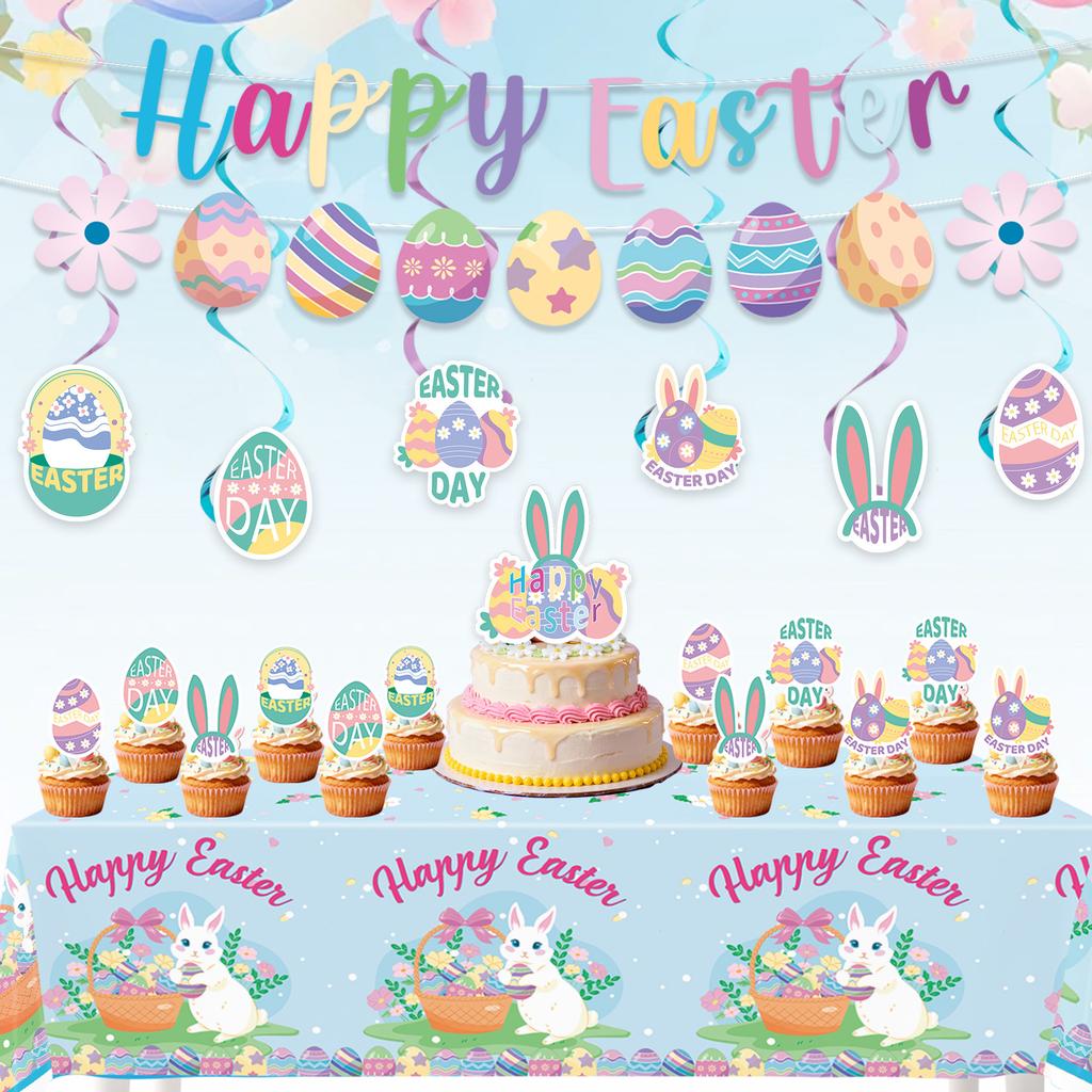 Easter Party Decorations, Easter Egg Banner Cake Decorations, and Decorative Items Create a Cheerful Atmosphere