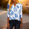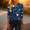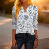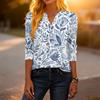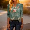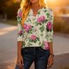 Women's Fashionable Casual Retro Floral V-Neck Decorative Button Three-Quarter Sleeve T-Shirt Top