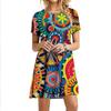New Summer Women Vintage 3D Print Dress Fashion Short Sleeve Ladies Dress Casual O-Neck Loose