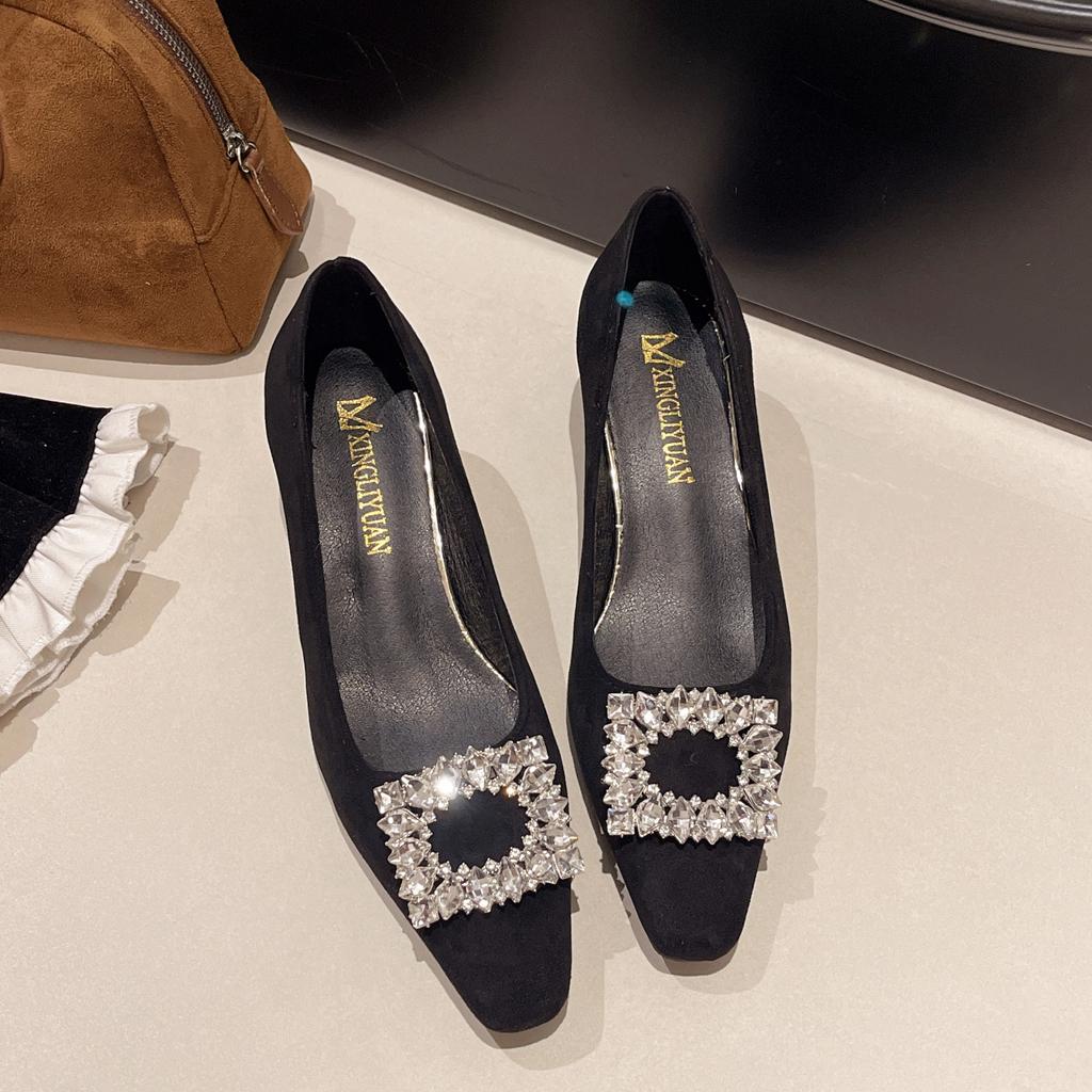 Square-toed Women's Singles Shoes Spring and Autumn Frosted New Shallow French Rhinestone Temperament