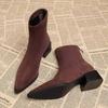 Leopard Women's Ankle Boots Mid Heels Pointed Toe Suede Shoes Winter Elegant Pumps Gothic Boots New Chelsea Mujer Botas