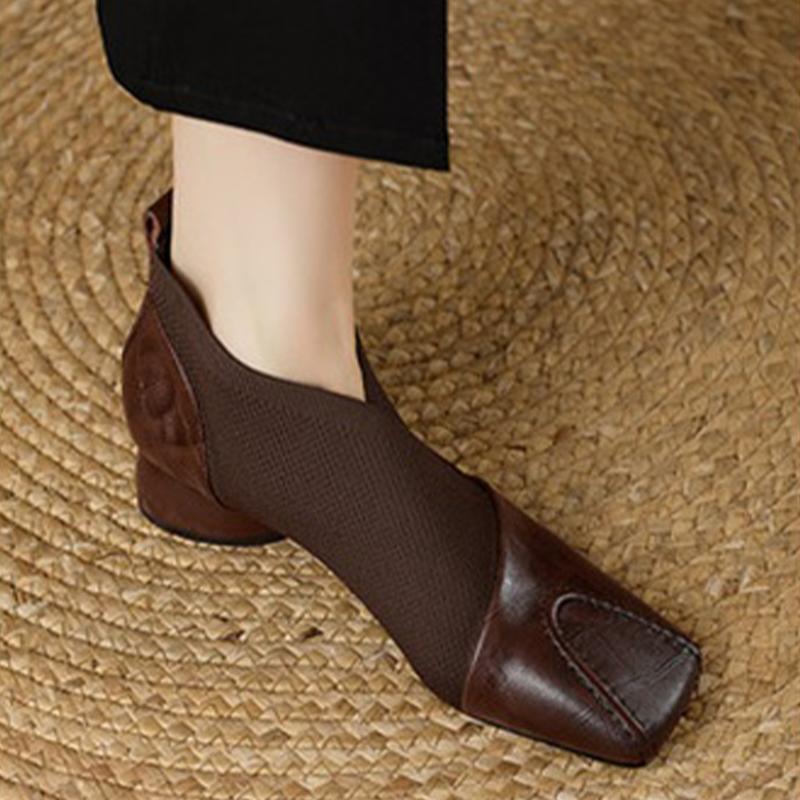 Square Toe Women's Ankle Boots Elegant Designer Mid Heels Shoes Fashion Party Winter Boots New Walking Knitting Mujer Botas