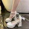 Women High Heels Pumps Elegant Bow Square Toe Women Mary Jane Shoes Pearl Lace Party Wedding Shoes Fashion Platform Women Pumps
